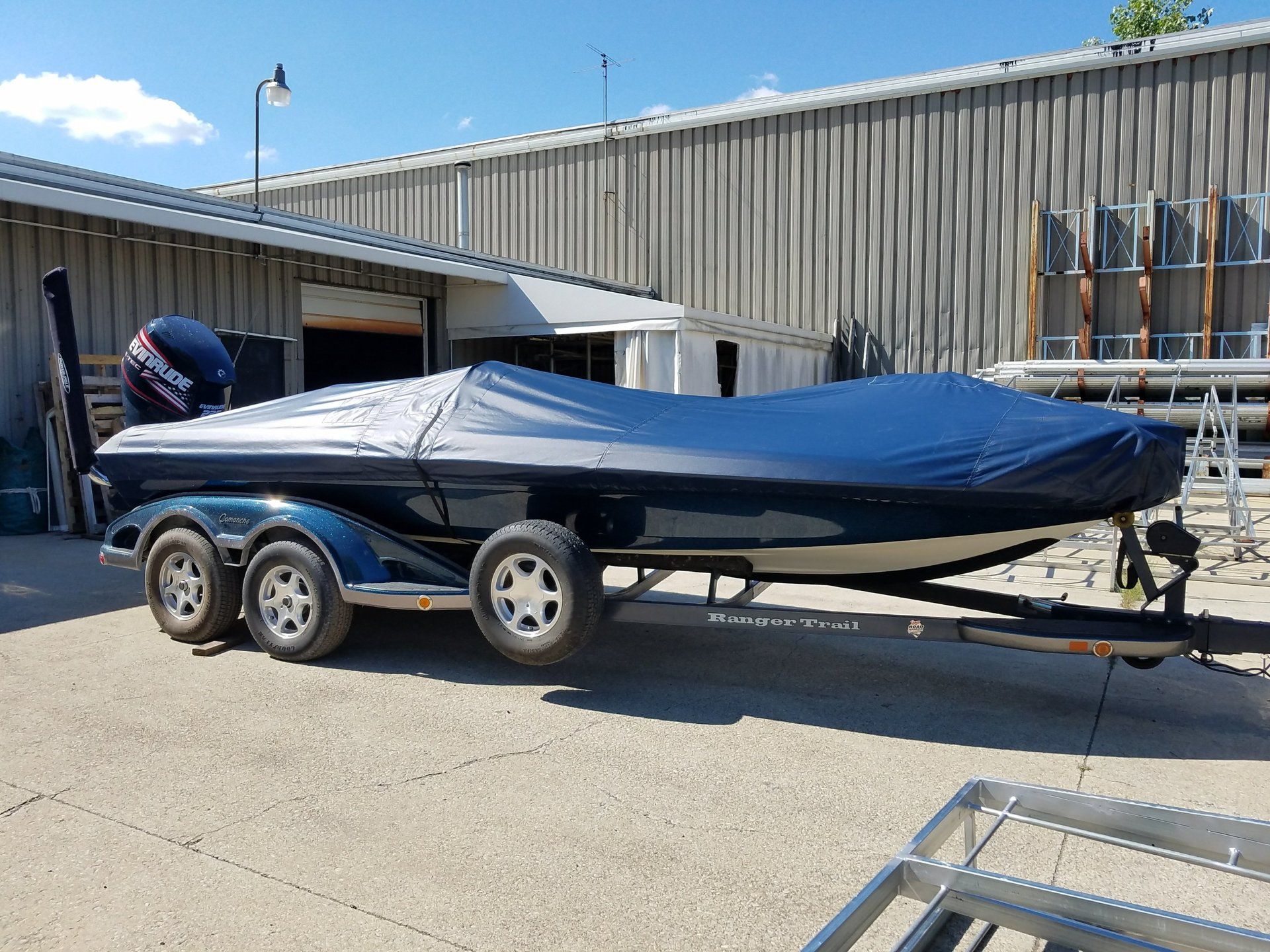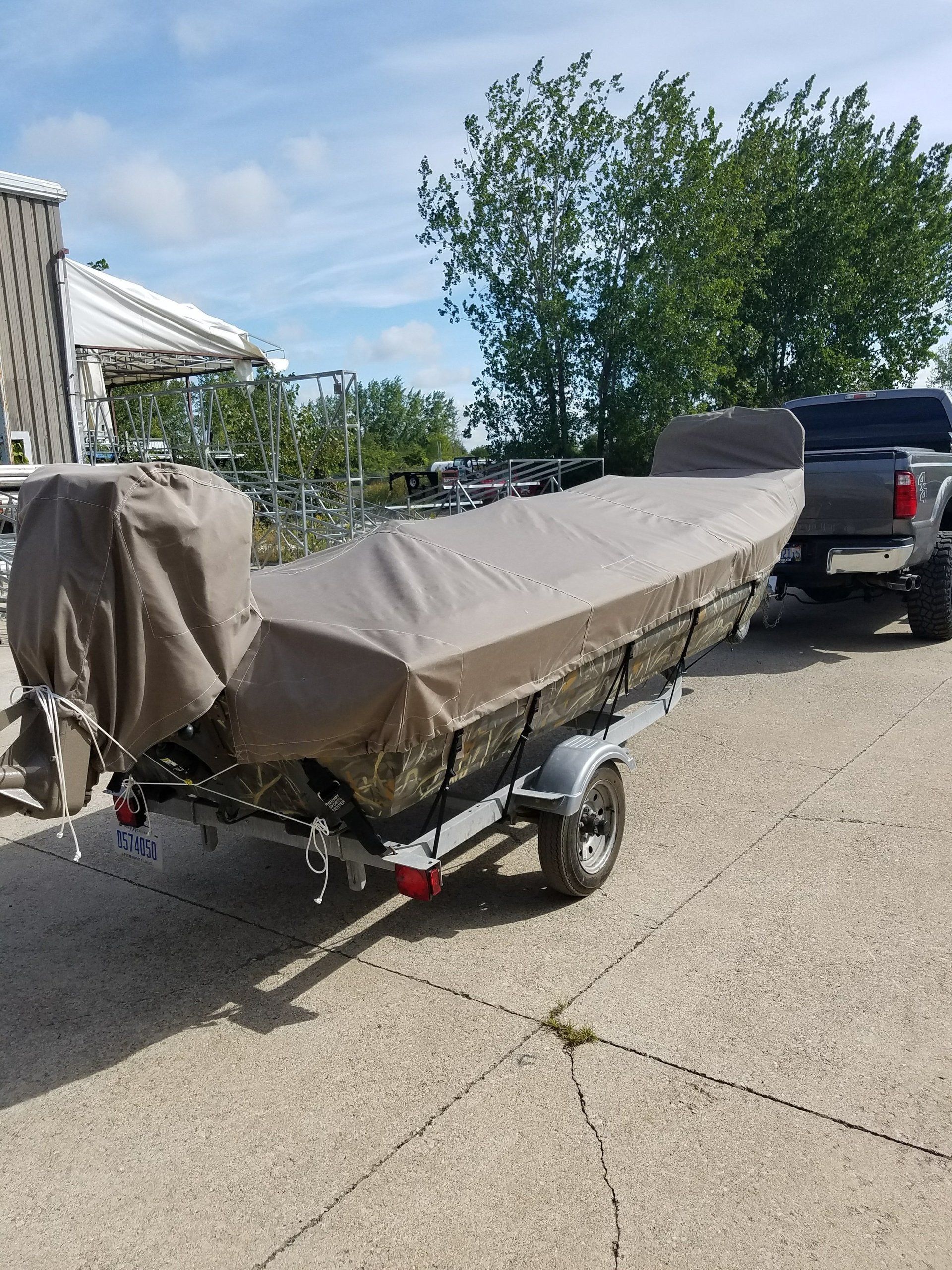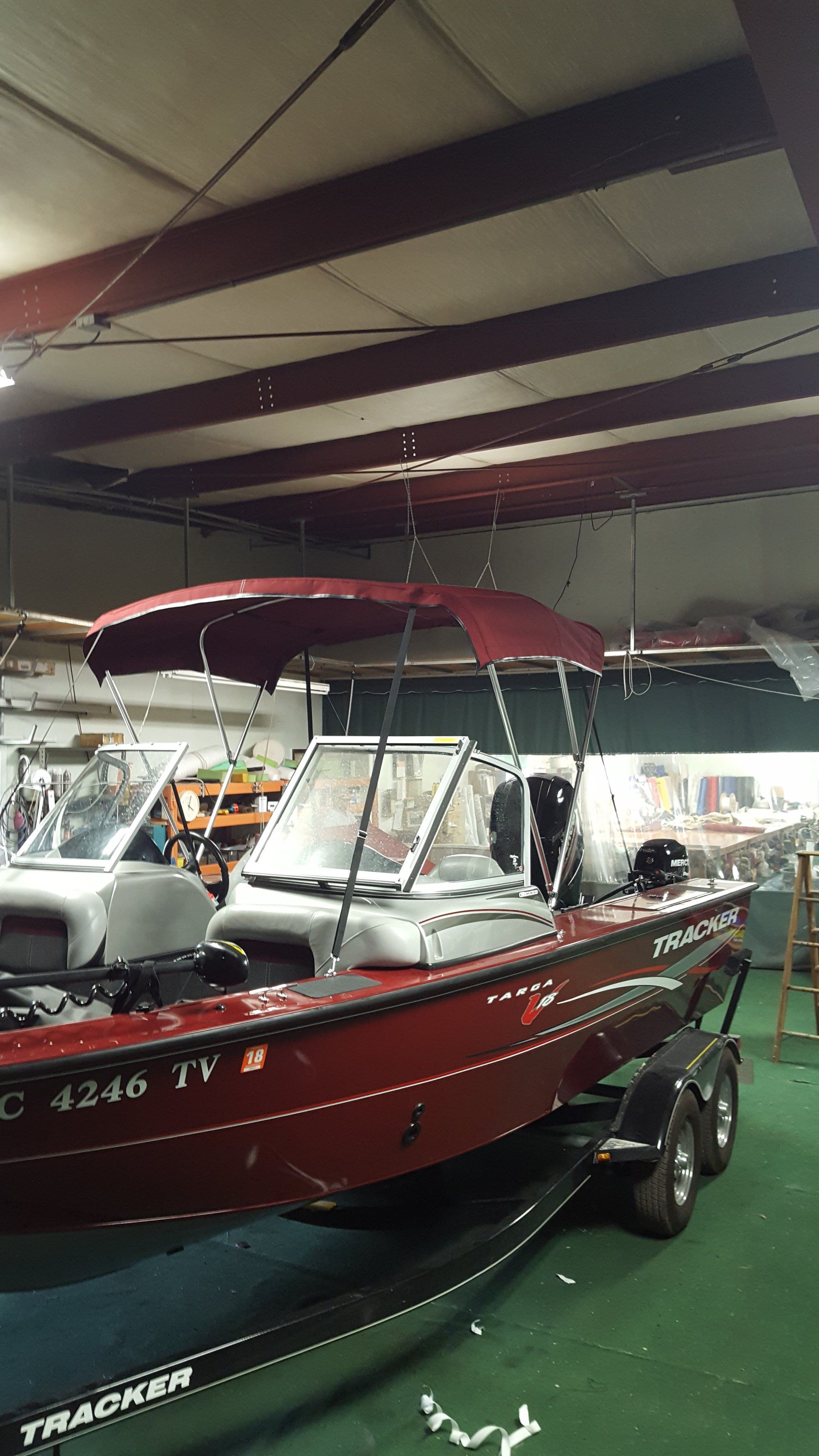 Dial Tent and Awning can make that new boat cover for you or repair the one you have in our full service custom sewing and repair shop. From a full travel cover to a Bimini top we can help protect you and your investment. We have the quality fabric you need from vinyls to Sunbrella, canvas boat duct and marine vinyl. We can also make frames if needed or put bows in for your cover. We have all the hardware you need.